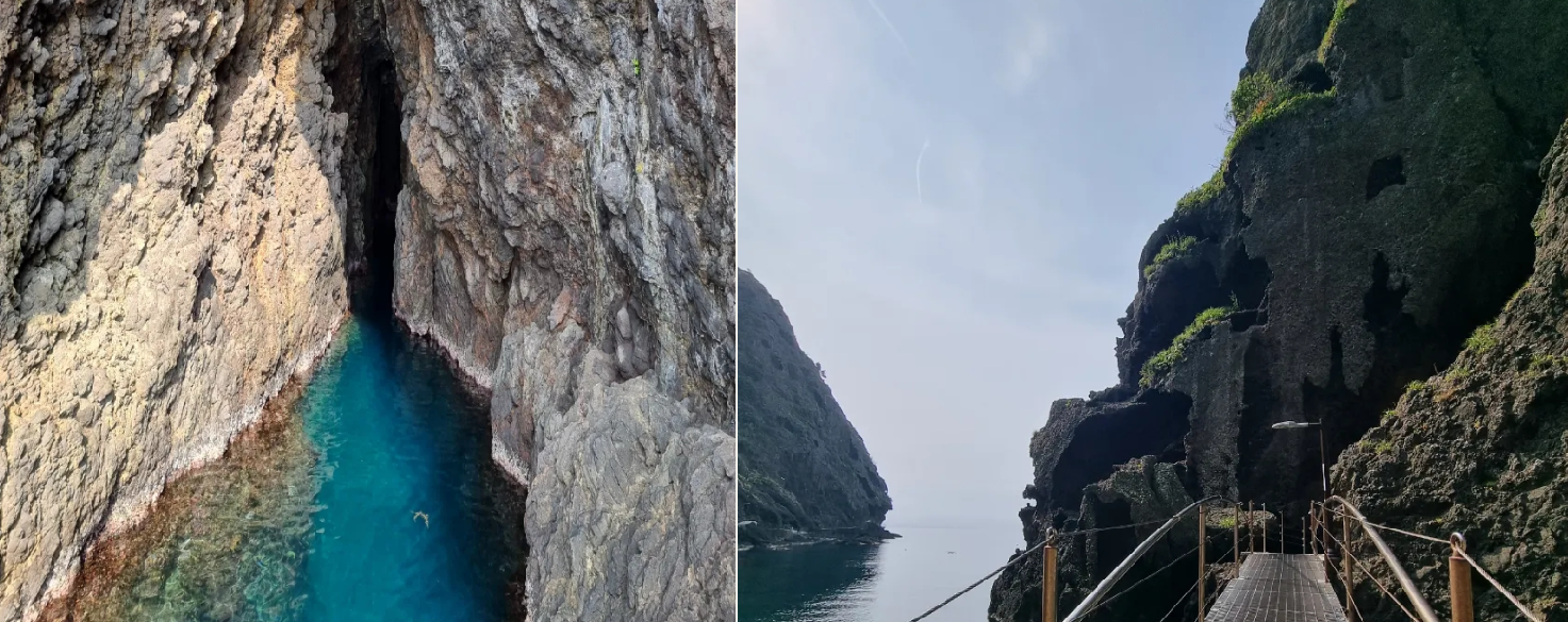 울릉도에는 많은 절경들이 있지만 그중에서 '행남해안산책로'를 추천드립니다. 이 산책로는 바다 위에 길이 있어서 특별한 트래킹을 할 수 있습니다. 해식동굴과 절벽 등 바다가 만들어낸 여러 조형물들을 구경하는 재미가 있고 풍경이 이쁩니다.