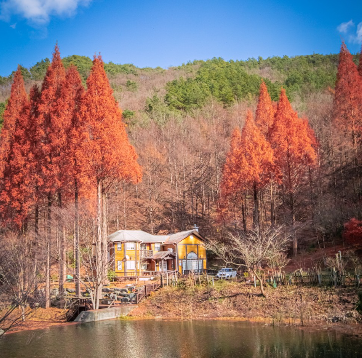 가을에 가게 되면 단풍이 물든 숲과 호수에 비친 풍경을 배경으로 인생샷을 건질 수 있습니다. 또한 논산시에는 미스터 선샤인, 구미호뎐 등 여러 드라마 촬영지가 있어서 같이 구경하는 것도 좋을 것 같습니다.